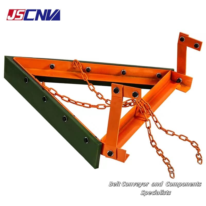 V-Plow գոտի մաքրող միջոցը վերադարձի գոտի մաքրող միջոց է: Այն հիմնականում օգտագործվում է ժապավենի փոխակրիչի կոնվեյերային թեքության ճախարակի դիմաց և ծանր ուղղահայաց ձգող սարքի դիմաց: Այն ունի թթվային և ալկալային դիմադրության բնութագրեր, բոցավառվող և հակաստատիկ, բարձր մաշվածության դիմադրություն և չի վնասում գոտին: Սայրը պատրաստված է բարձր ամրության պոլիուրեթանից, V-աձև դիզայնը ապահովում է գոտու մաքրությունը, իսկ ինքնահոս դիզայնը ապահովում է ավտոմատ փոխհատուցում, երբ սայրը մաշվում է: